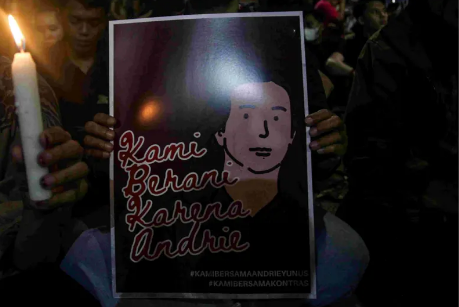 Activists held a solidarity prayer for Andrie Yunus and raised posters outside the National Human…